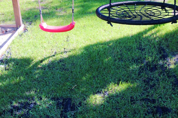 Beim Spielen und Toben hinterlassen Kinder schnell um den Spielgeräten herum Spuren auf dem Rasen. Vorallem unter der Schaukel oder an Rutschen sind die großflächigen Grasnarben deutlichen zu erkennen. Diese Schäden sind nicht nur unschön anzusehen, sondern stellen auch eine Gefahr für die Kinder da. Bei Regen entsteht schnell Matsch und Pfützen, da dass Regenwasser auf den verdichteten Boden nicht mehr absickern kann. Gerade auf den glatten, harten Flächen ist die Gefahr auszurutschen groß. Zudem verliert der Rasen durch die Verdichtung des Bodens seine natürlichen Fallschutz-Fähigkeiten, wodurch der Boden hart wie Beton wird und ein sorgloses Spielen wird unmöglich.